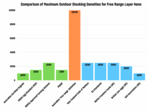 Look at the graph below to see how Australia’s definition of free range is out of step with other schemes and the rest of the world.