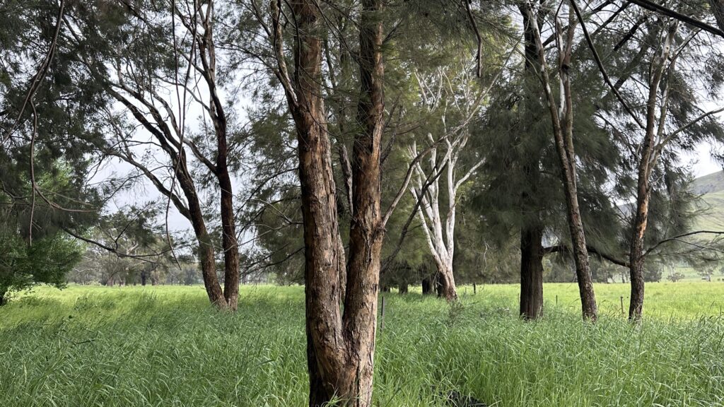 Kelvin Grove spans 35 hectares. The land has been keyline managed by the previous owners to catch and store water. The property features mixed remnant vegetation, mostly trees. The property is naturally the ecosystem is box gum grassy woodlands and currently features a small patch of the plant community type Riparian Ribbon Gum – Robertsons Peppermint – Apple Box riverine very tall open forest of the NSW South Western Slopes and South East Highlands Bioregions.Â